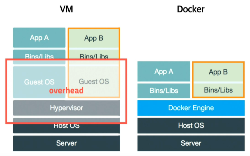 VM은 기존의 OS위에 한 겹을 더 올리는 느낌이라 느리다.