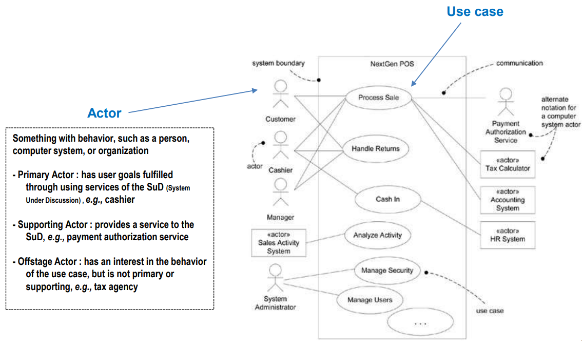 - 일을 직접 하는 actor를 primary actor, 일을 시키는 사람을 secondary actor라고 부름.