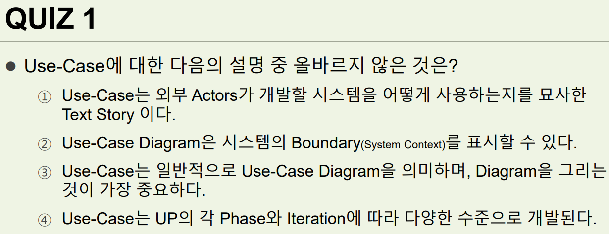 정답: 3번. use case는 text이고 diagram은 보조수단임.