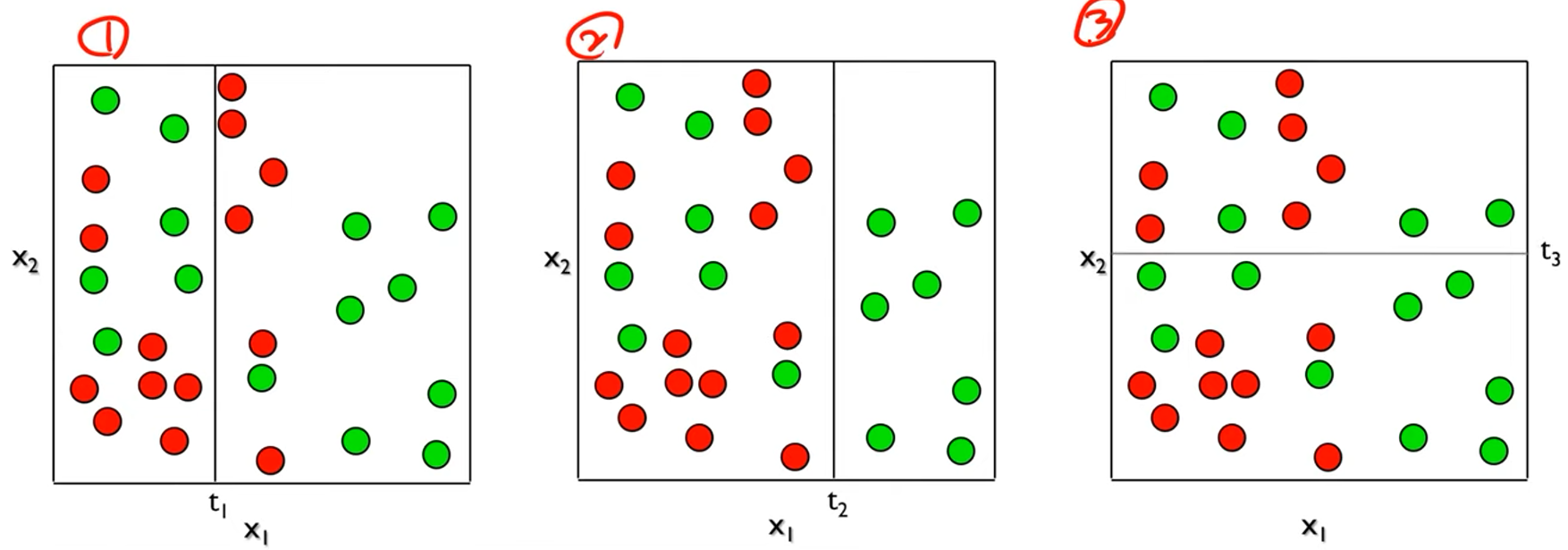 - Decision Tree와 마찬가지로 y를 균일하게 분류하는게 목표