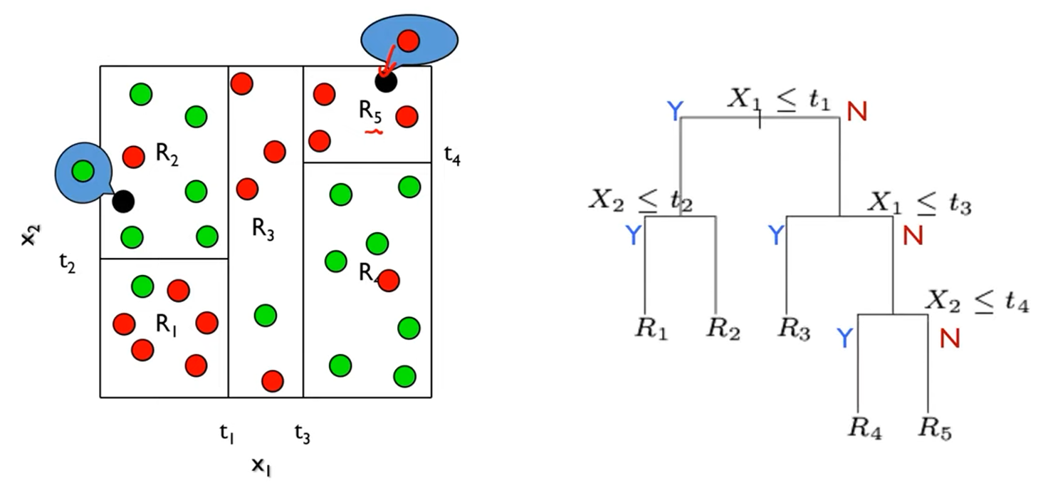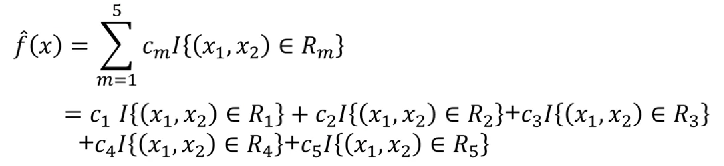 아래의 경우 R1~R5 Terminal node에는 y의 평균값이 들어간다.