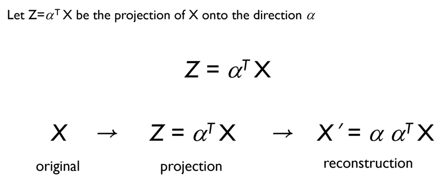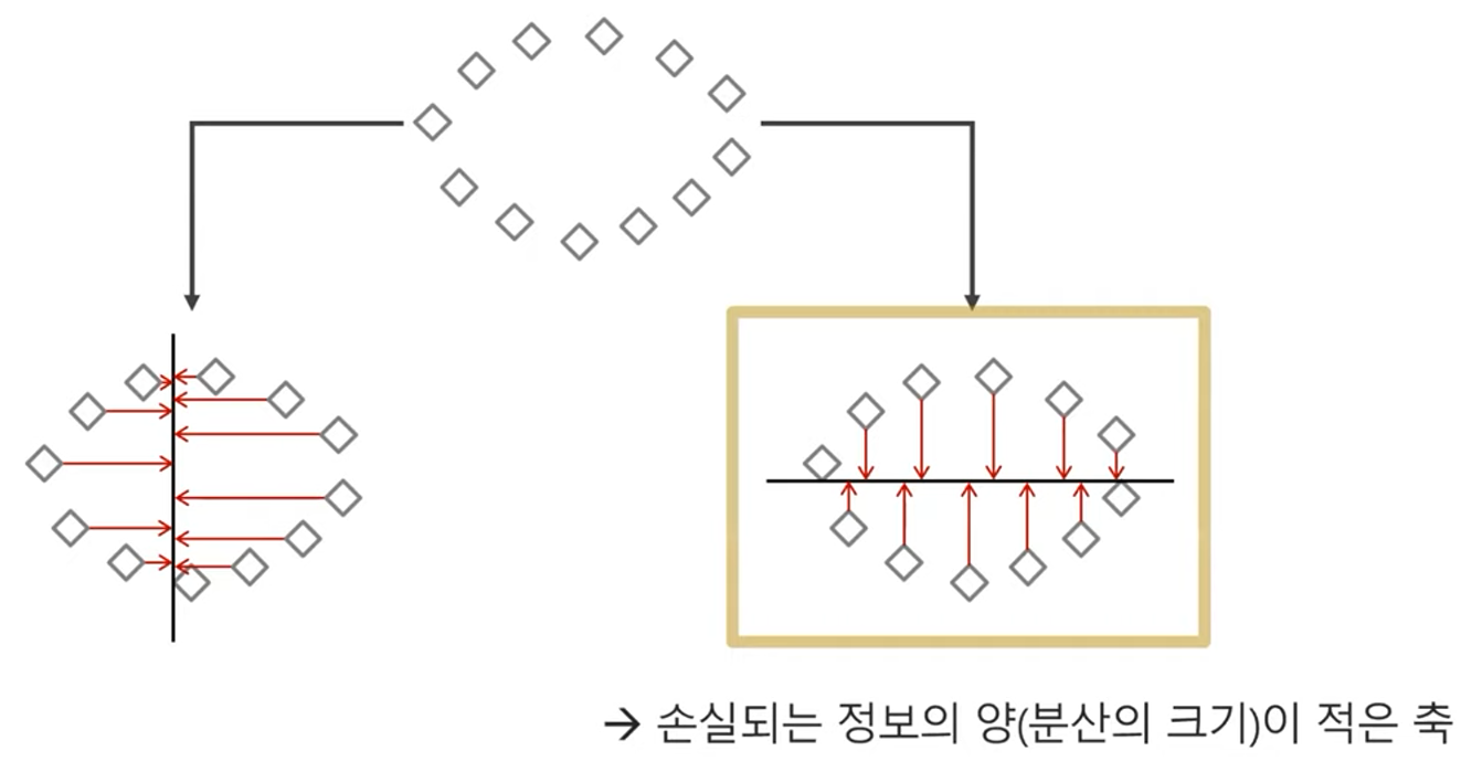원본 데이터의 분산을 최대한 보존하는 새로운 축을 찾고, 그 축에 데이터를 projection 시키는 기법