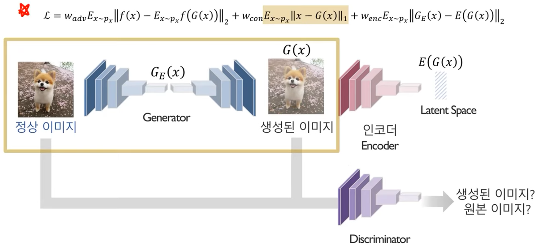 1. 생성된 이미지가 정상 이미지의 특성을 잘 반영하도록 학습