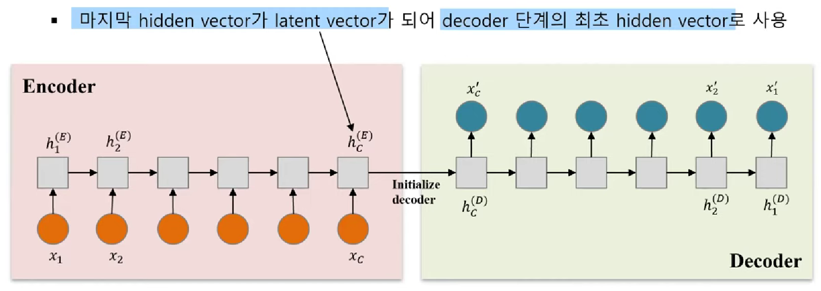 - Sequence 데이터를 위한 LSTM 구조를 사용하는 autoencoder
