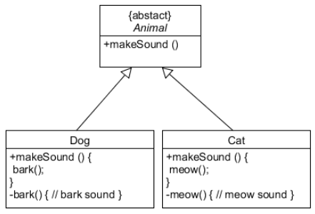 Dog d = new Dog(); d.bark();아래와 같이 상위 클래스인 Animal에서 makeSound를 호출하여 Dog의 makeSound가 호출되도록 하는게 더 낫다.