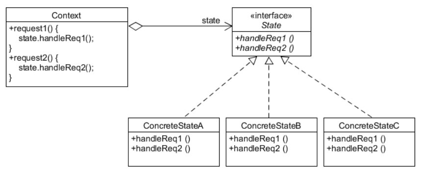 - UML의 state machine diagram을 구현할 때 가장 적합한 패턴