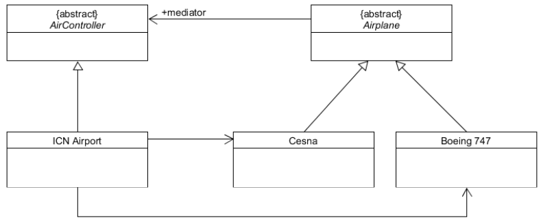 각 비행기들은 서로 직접 통신하지 않고 Mediator인 관제탑을 통해서 통신한다.