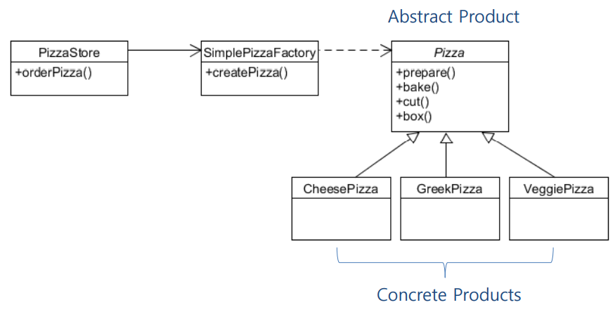 이렇게 그리면 PizzaStore가 Concrete Product의 변경/추가에 영향을 받지 않아서 좋다.
