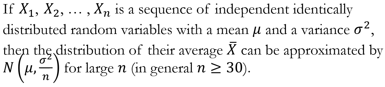 표본의 크기가 충분히 크다면 모집단의 분포와 상관없이 표본의 평균은 정규 분포를 따른다.