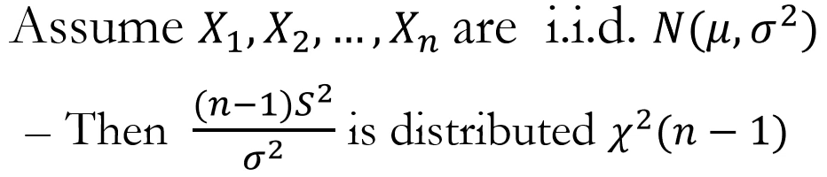 n-1과 σ²는 상수이므로 표본 분산이 카이제곱 분포를 따른다고 해도 된다.