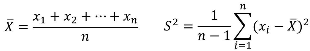 아래와 같이 표본 평균, 표본 분산이 대표적인 통계량이다.