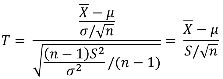 t분포의 정의에 따라 대입해서 정리하면 아래와 같이 된다.