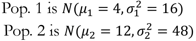 아래와 같은 두 모집단으로부터 각각 표본을 뽑았다고 가정해보자.