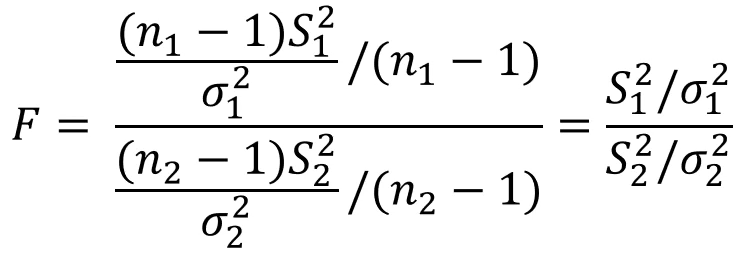 아래의 모분산과 표본분산으로 이루어진 값은 F분포를 따른다.