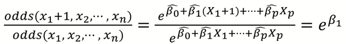 즉 쉽게 설명하면 x₁이 1 증가할 때 마다 승산 비율이 e^(β₁) 만큼 변한다는 뜻이다.