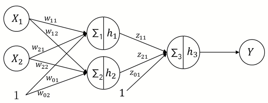 층이 두 개라서 이중 퍼셉트론이라고 부른다.