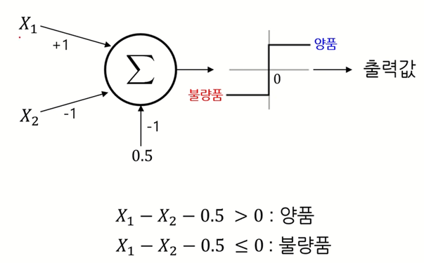 단층 퍼셉트론 모델은 아래와 같이 선형 결합으로 결과값을 판단하는 아주 단순한 구조이다.