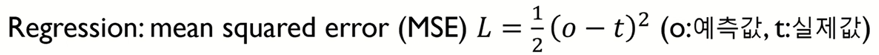 수치 예측은 아래와 같이 예측값과 실제값의 차이를 비용함수로 쓸 수 있다.