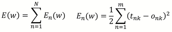 학습의 목적은 출력값(t)과 예측값(o)의 차이를 최소로 만드는 파라미터(w)를 찾는 것이다.