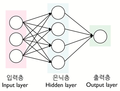 단층 퍼셉트론에서는 입력값이 바로 출력값이 되는데, 여기서는 중간에 층을 하나 더 만들었다.