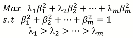 위의 식을 어렵게 풀지 않아도 β1과 λ1이 1이고 나머지가 0일때 최대임을 짐작할 수 있다.