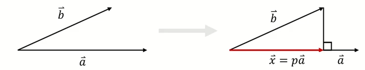 방향은 같게 되며 크기는 수직인 지점까지가 되는 벡터를 찾는 것이다.