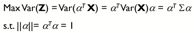 이런 가정하에 Z의 분산을 최대화하는 α를 찾아야 한다.