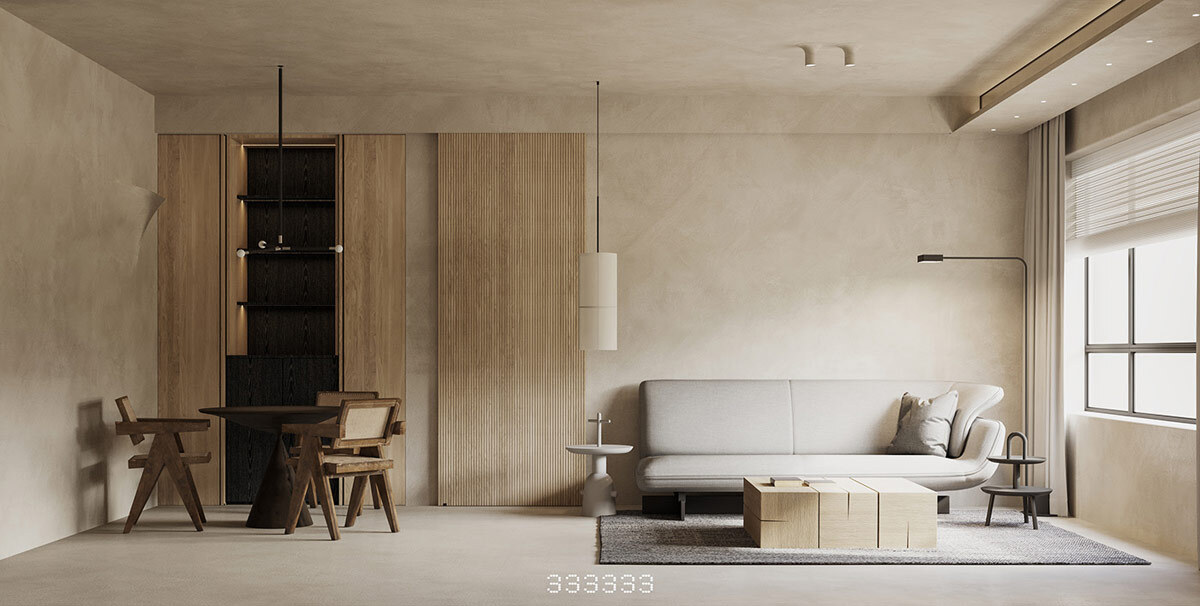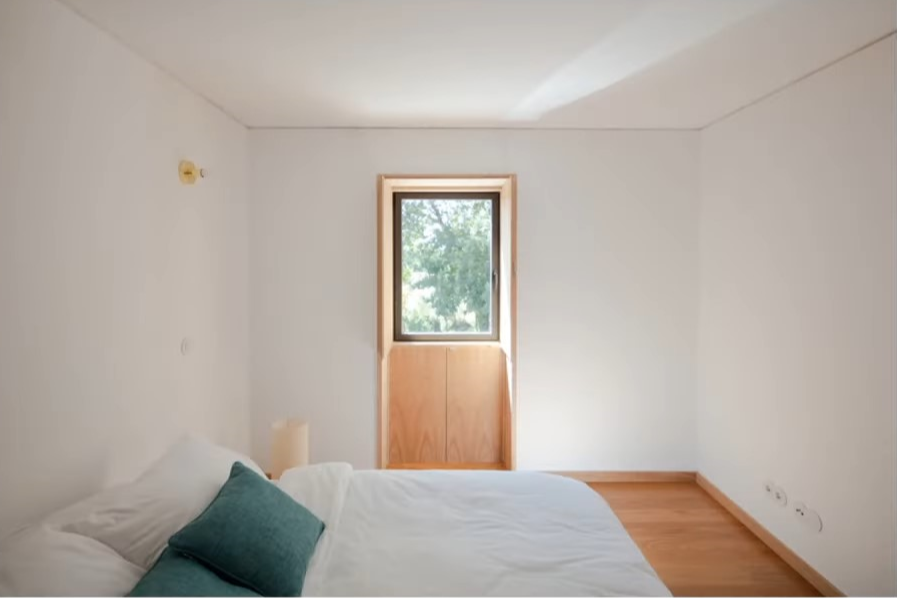 아파트는 창을 새롭게 낼 수가 없어서 그렇지만 주택은 채광이 필요하면 창을 늘려서 자연광을 들여오면 된다. 등은 최소한으로 설치하자. 아래 그림도 보면 왼쪽 벽에 작은 조명만 하나 있을 뿐이다.