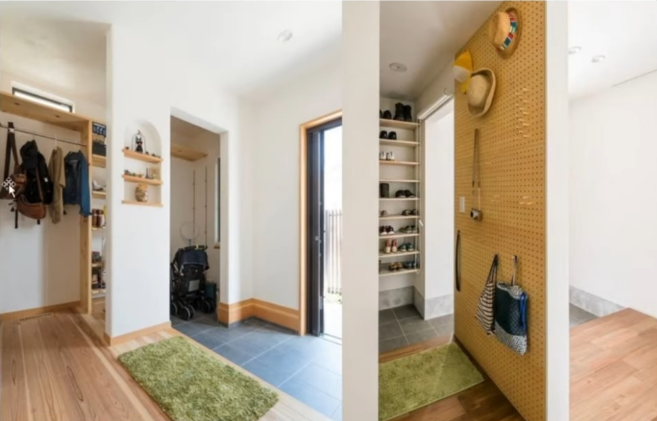그리고 외투나 신발, 유모차 등을 보관할 수 있도록 현관 옆에 펜트리와 간이 옷걸이를 설치하면 좋다.